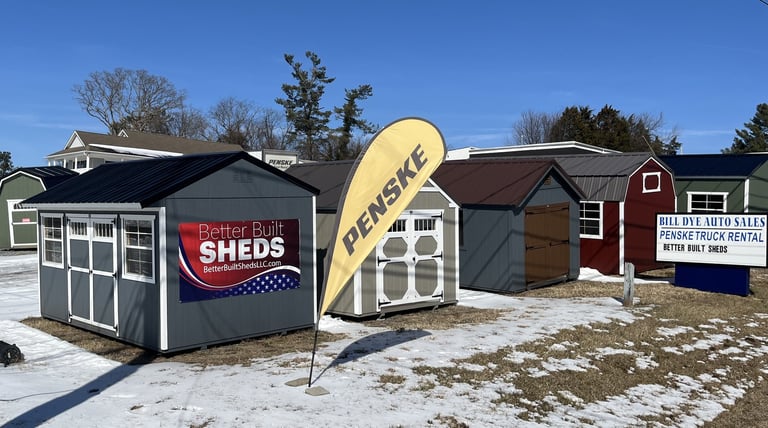 Lynchburg Sheds & Carports at Bill Dye Auto Sales proudly partners with Better Built Sheds to provide high-quality sheds at a fair price to our community. Choose from one of our thoughtfully designed on-lot sheds or work with a representative to design a shed for your storage needs!